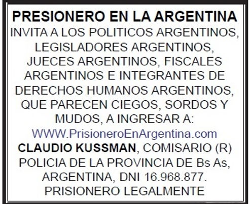 Agradecemos a MegaBaires por su colaboracion en está empresa. Claudio A. Kussman es un Prisionero Ilegal en Argentina desde el 28 de Noviembre de 2014.